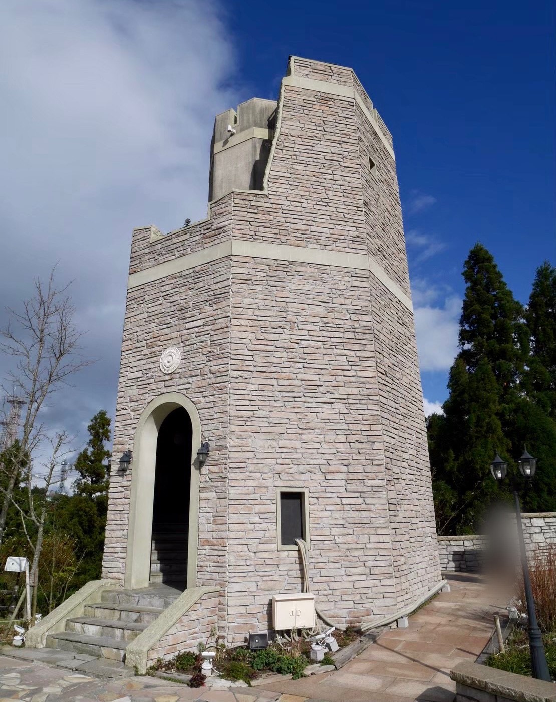 見晴らしの塔は階段を登って塔の上まで上がると、六甲山の雄大な景色を360度見渡すことができ、晴れた日には神戸の街並みや遠くの海まで一望できます。